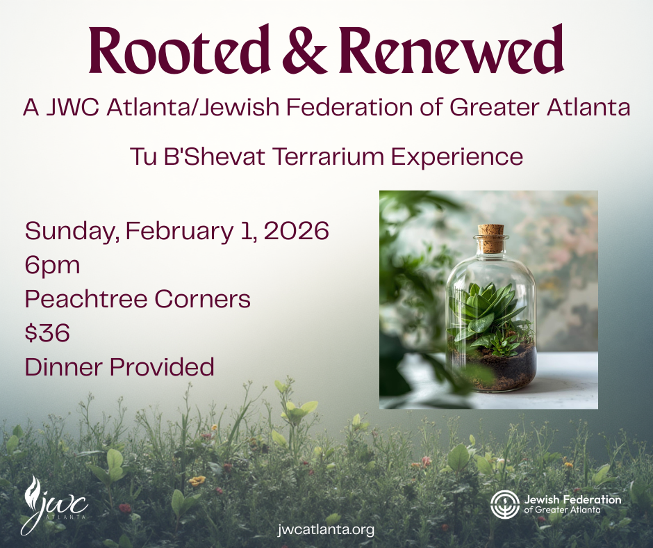 Please join JWC Atlanta and the Jewish Federation of Greater Atlanta for a Tu B'Shevat Terrarium experience! Dinner provided.